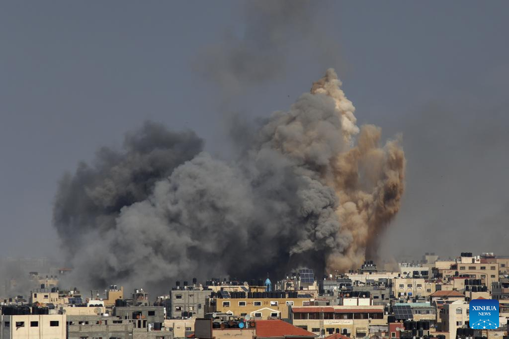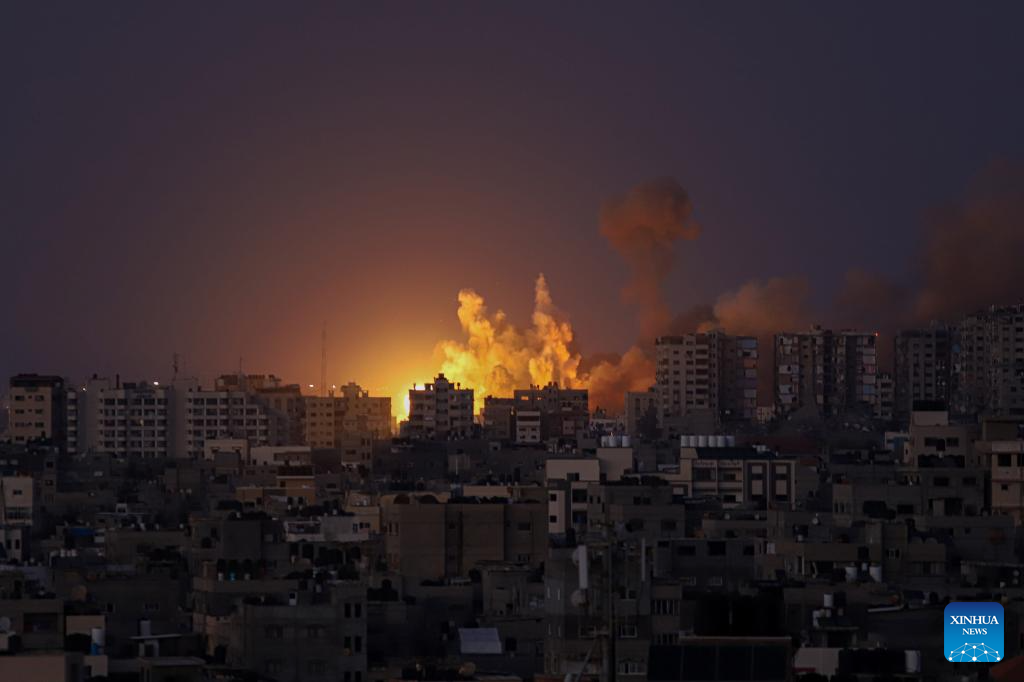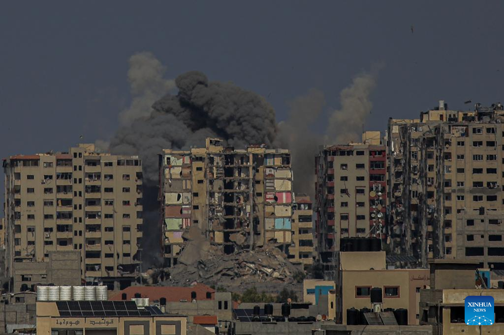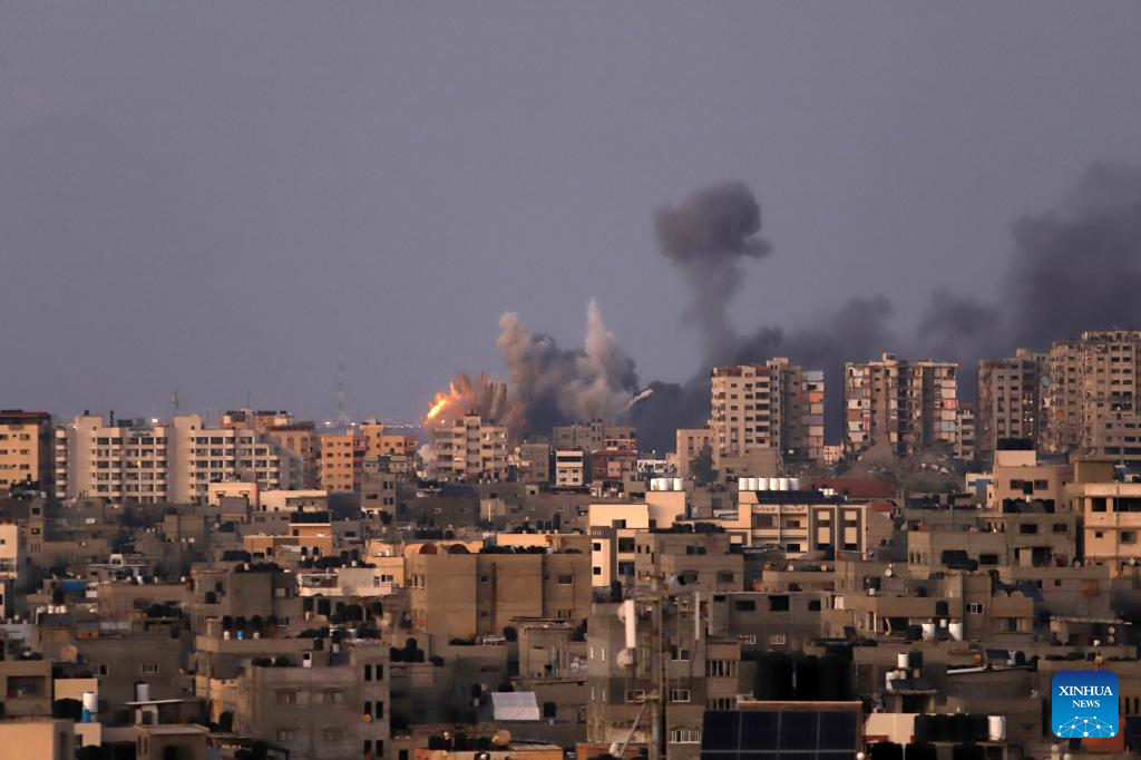 Smoke billows following an Israeli airstrike in Gaza City, on Oct. 12, 2023. Israel on Thursday continued its airstrikes on various areas of the Gaza Strip. (Photo by Rizek Abdeljawad/Xinhua)