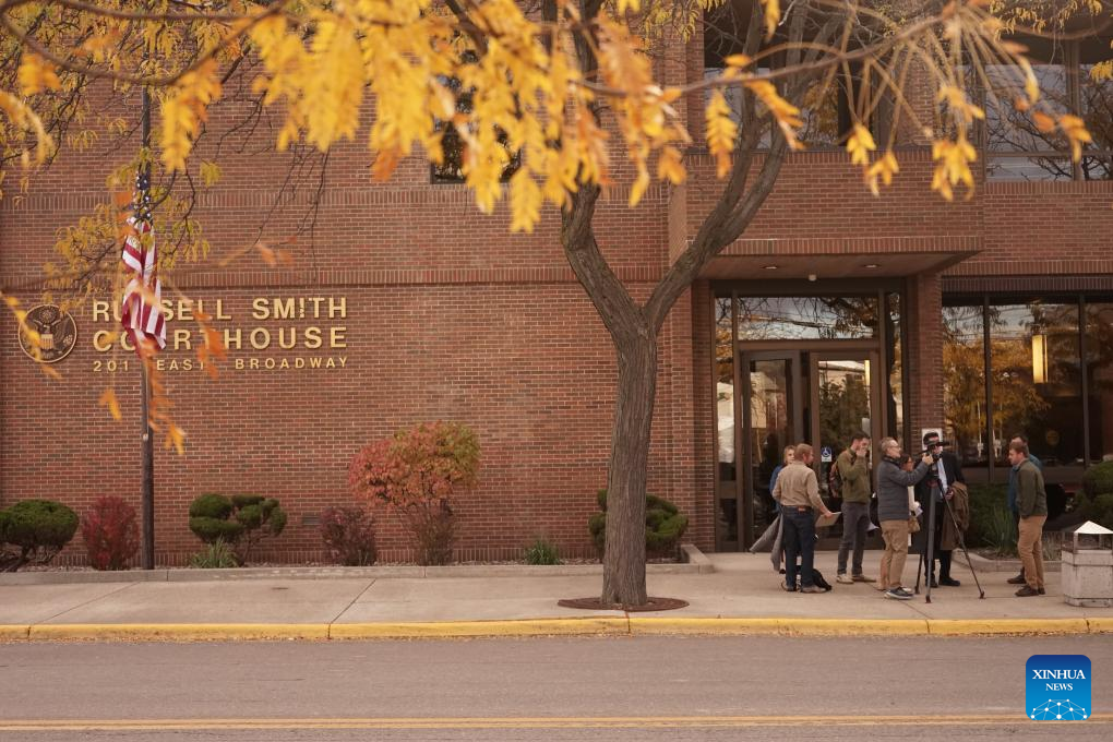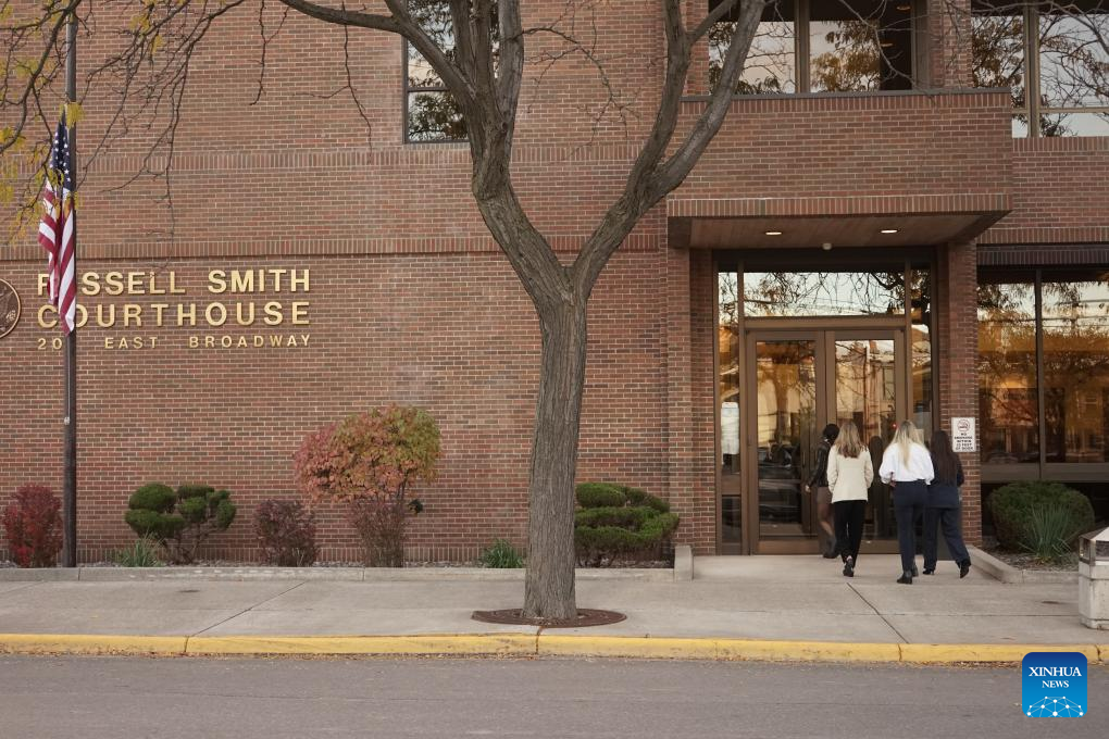 People walk by the U.S. District Court for the District of Montana in Missoula, Montana, the United States, on Oct. 12, 2023. A court hearing on social networking platform TikTok's lawsuit against the western U.S. state of Montana over the state's ban on the app was held in Missoula, Montana, on Thursday. (Photo by Zeng Hui/Xinhua)