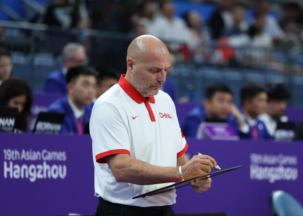 Coach of Team China Aleksandar Djordjevic is seen during the Men's Bronze Medal Game of Basketball between China and Chinese Taipei at the 19th Asian Games in Hangzhou, east China's Zhejiang Province, Oct. 6, 2023. (Xinhua/Pan Yulong)