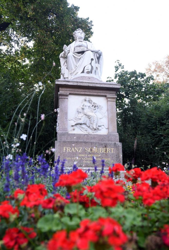 This photo taken on Oct. 2, 2023 shows a monument of Franz Schubert in Vienna, Austria. (Photo by Han Lu/Xinhua)