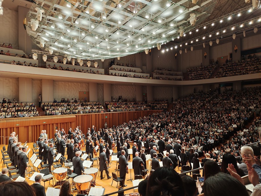 The audience applaud after a performance by artists from the Vienna Philharmonic at the National Center for the Performing Arts in Beijing, capital of China, May 31, 2023. (National Center for the Performing Arts/Handout via Xinhua)