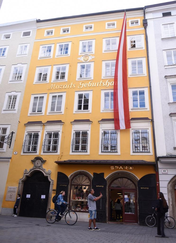 This photo taken on Oct. 4, 2023 shows the birthplace of Wolfgang Amadeus Mozart in Salzburg, Austria. (Xinhua/He Canling)