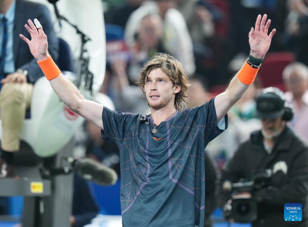 SHANGHAI, Oct. 14 (Xinhua) -- Andrey Rublev eased into the final at the ATP Shanghai Masters by edging his old friend Grigor Dimitrov 7-6(7), 6-3 here on Saturday.