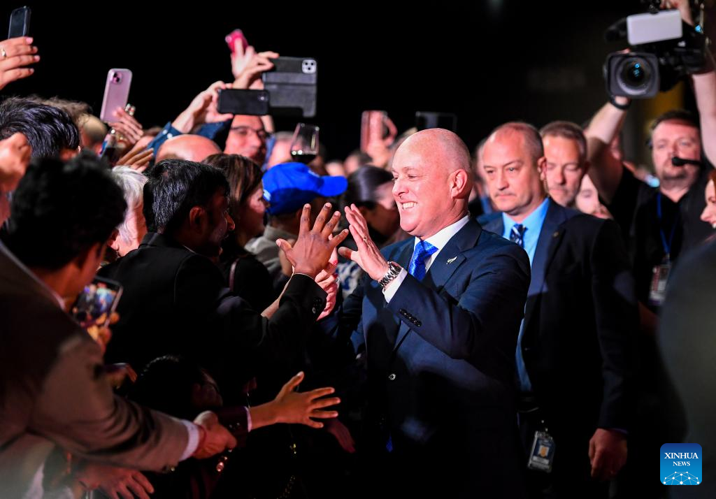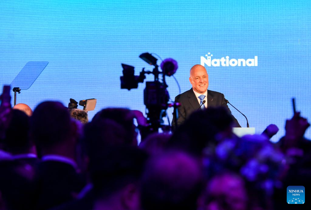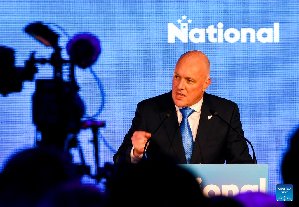 A coalition of right-wing parties led by the National Party won more than half of parliamentary seats and secured the right to form a government, and National Party's leader Christopher Luxon will be the prime minister of the new government. (Xinhua/Guo Lei)