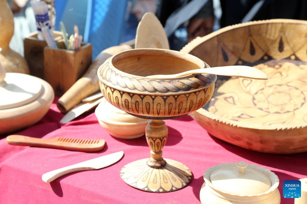 This photo taken on Oct. 10, 2023 shows handicrafts during a traditional cultural event in Tehran, Iran. The Iranian nomads recently traveled hundreds of kilometers to the capital Tehran to showcase their products, capabilities, and lifestyles at a seven-day traditional cultural event.(Xinhua/Shadati)