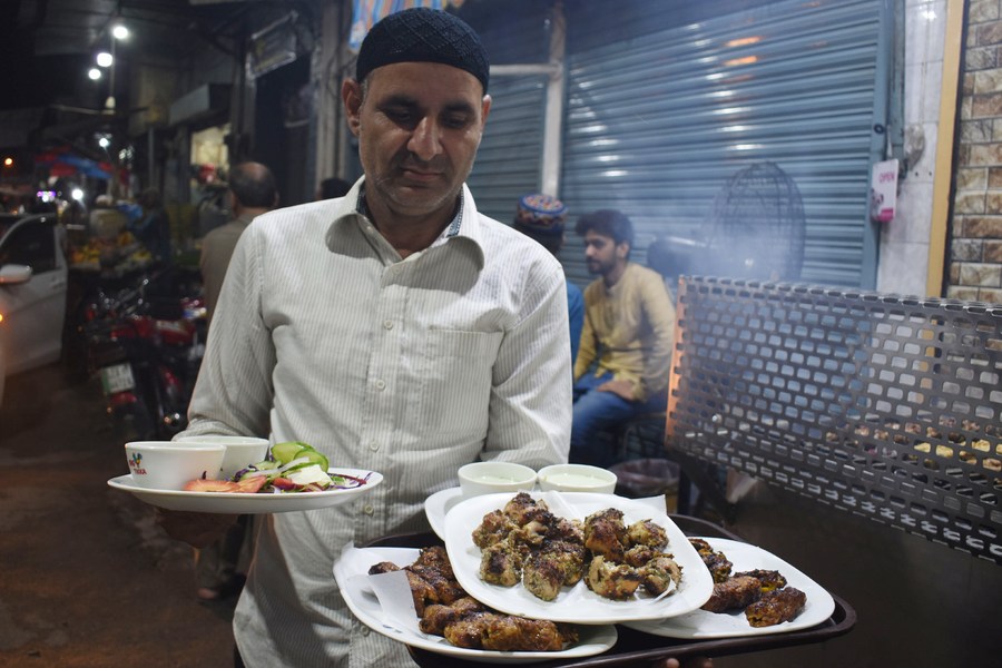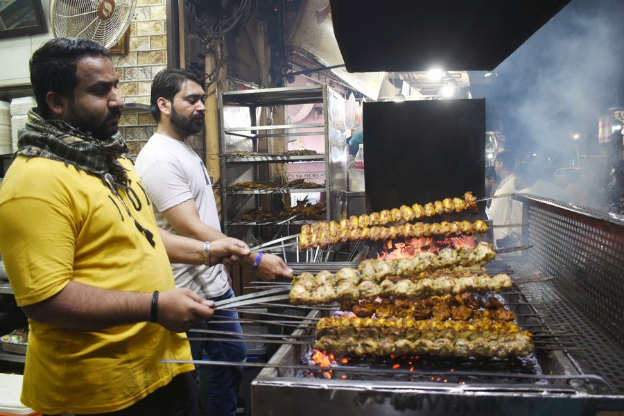 A man serves barbecue along a street in Lahore, Pakistan on Oct. 15, 2023. (Photo by Sajjad/Xinhua)