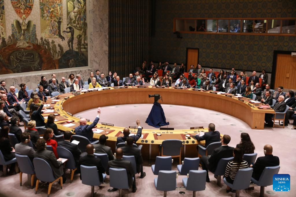 The UN Security Council holds a vote for a Russian-drafted resolution that calls for a humanitarian ceasefire in Gaza, at the UN headquarters in New York on Oct. 16, 2023. The UN Security Council on Monday failed to adopt a Russian-drafted resolution that calls for a humanitarian ceasefire in Gaza. The draft resolution obtained five votes in favor and four against, with six abstentions. (Xinhua/Xie E)