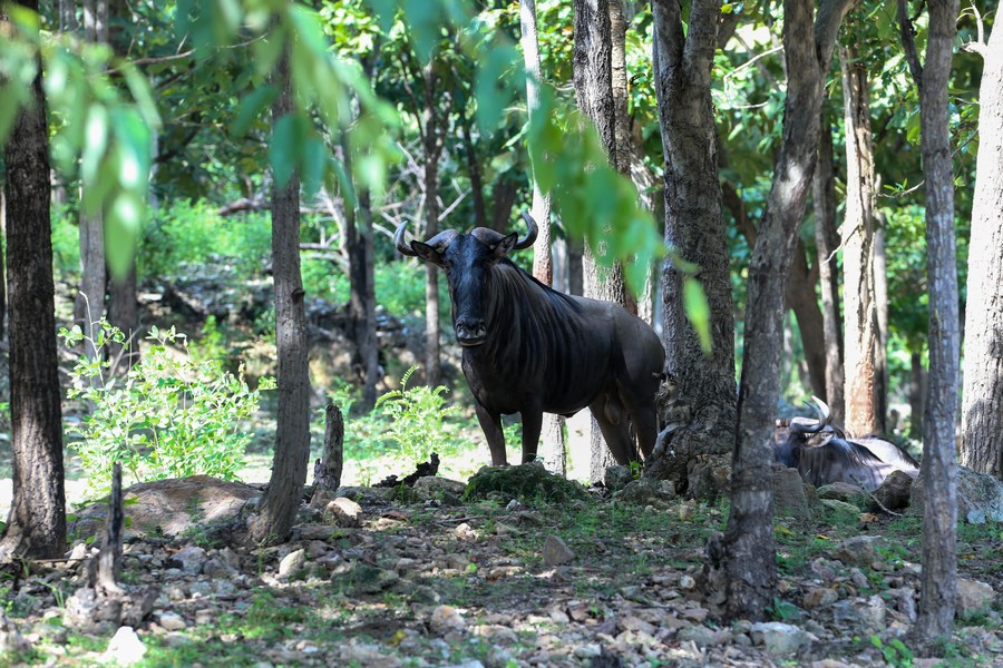 A gnu is seen at the Safari Park in Nay Pyi Taw, Myanmar, Oct. 16, 2023. (Photo by Myo Kyaw Soe/Xinhua)