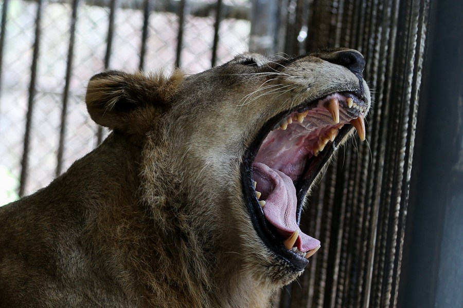 A lion roars at the Safari Park in Nay Pyi Taw, Myanmar, Oct. 16, 2023. (Photo by Myo Kyaw Soe/Xinhua)