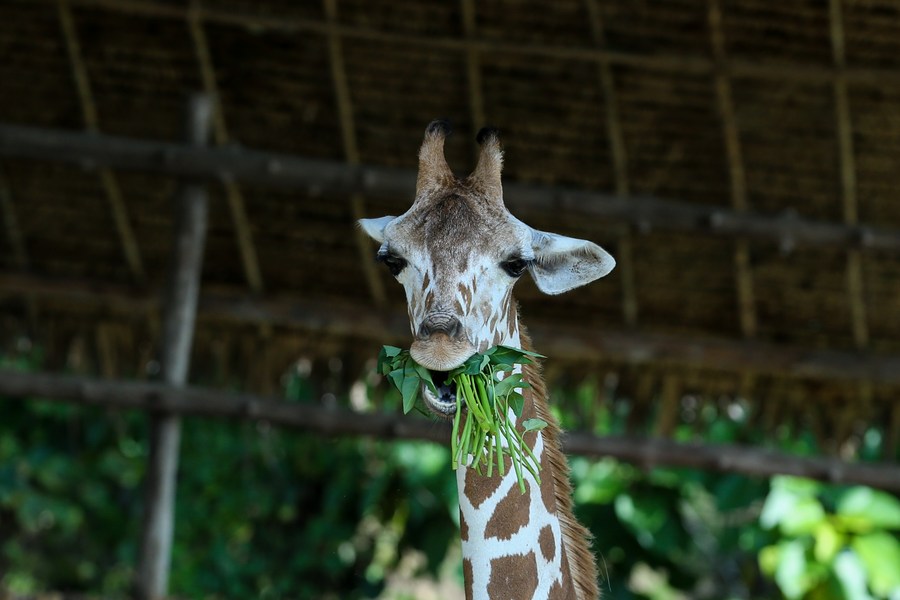 A giraffe is seen at the Safari Park in Nay Pyi Taw, Myanmar, Oct. 16, 2023. (Photo by Myo Kyaw Soe/Xinhua)■