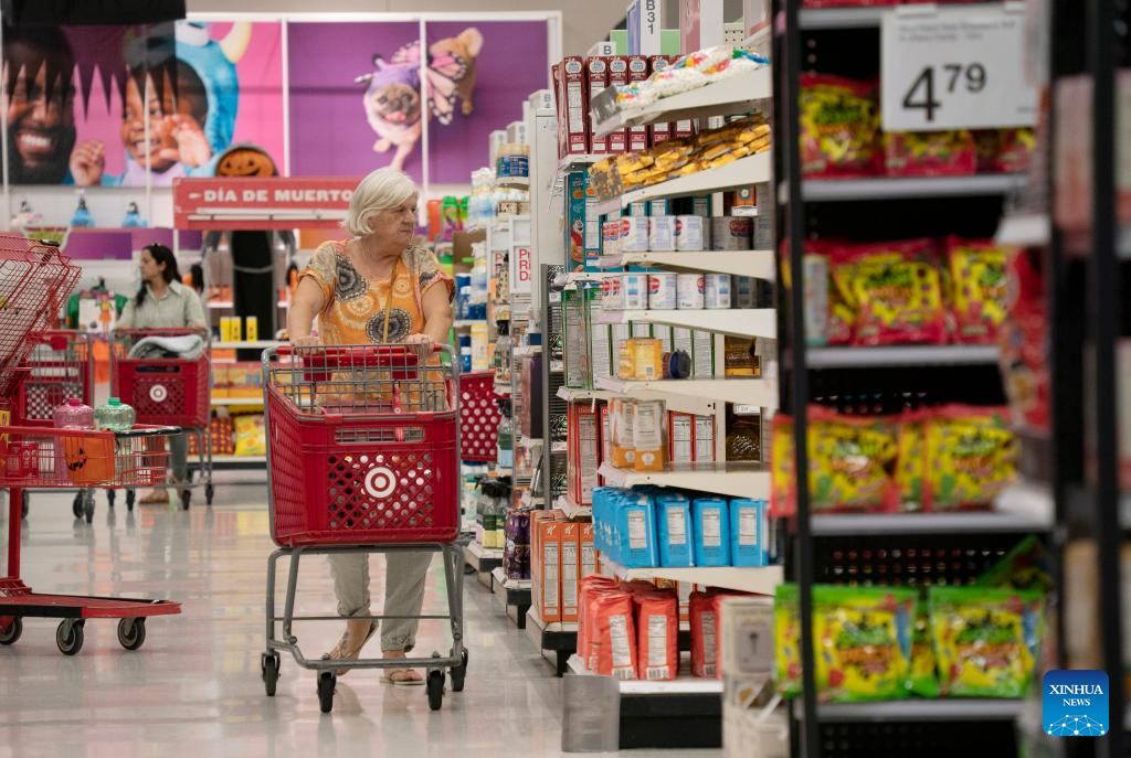 A customer selects goods at a supermarket in San Mateo, California, the United States, Oct. 17, 2023. U.S. retail sales rose 0.7 percent in September from the previous month, according to data released by the U.S. Commerce Department on Tuesday. (Photo by Li Jianguo/Xinhua)
