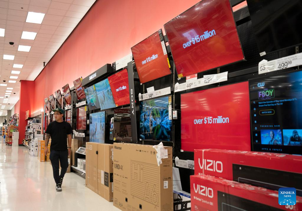 A customer walks at the electric products zone of a supermarket in San Mateo, California, the United States, Oct. 17, 2023. U.S. retail sales rose 0.7 percent in September from the previous month, according to data released by the U.S. Commerce Department on Tuesday. (Photo by Li Jianguo/Xinhua)