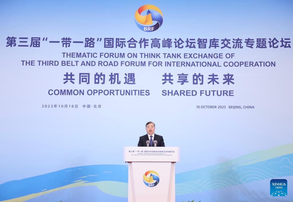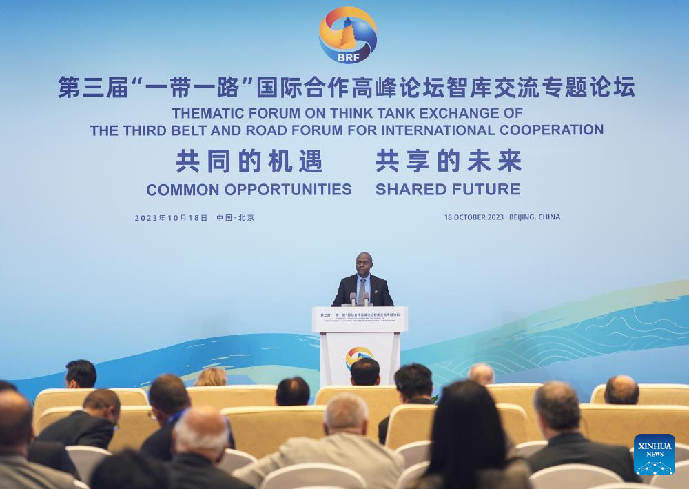The Thematic Forum on Think Tank Exchange of the third Belt and Road Forum for International Cooperation is held in Beijing, capital of China, Oct. 18, 2023. (Xinhua/Peng Ziyang)