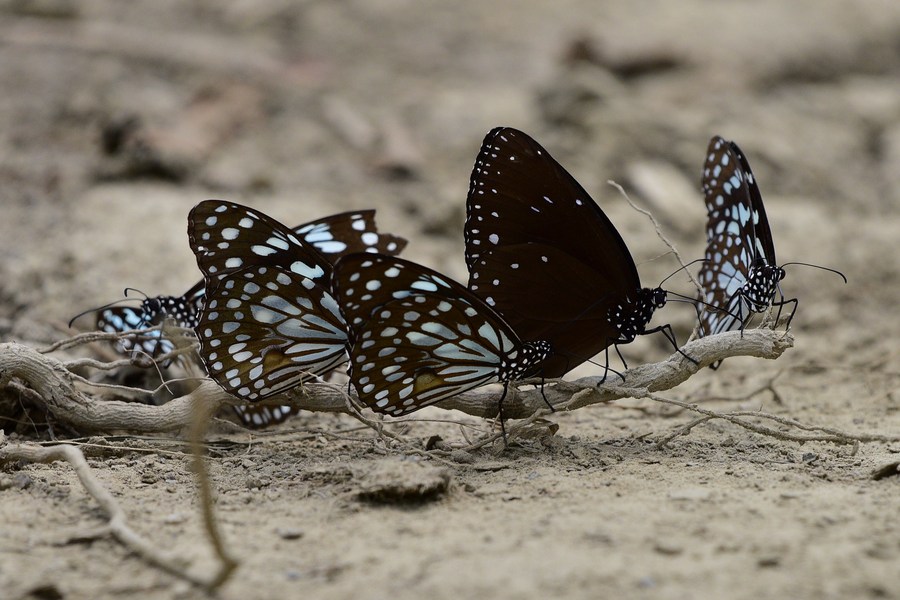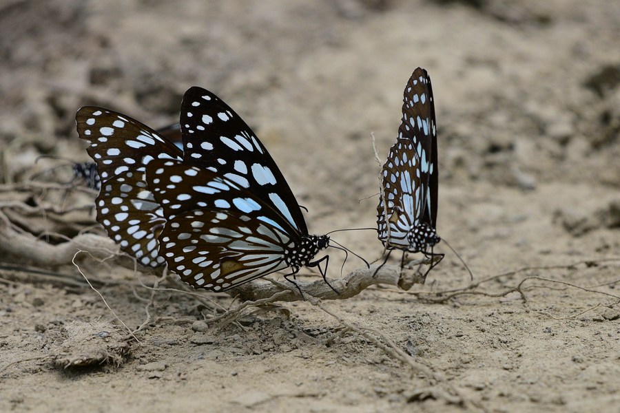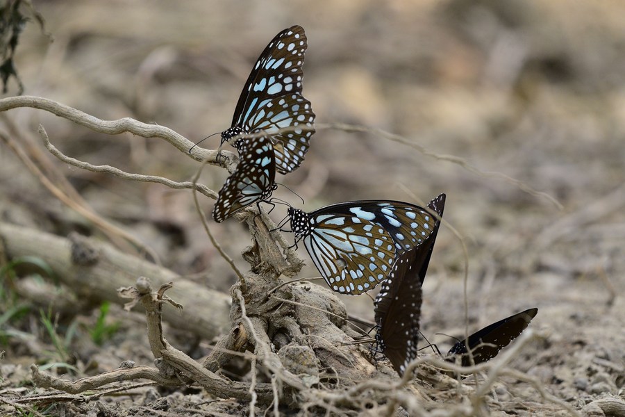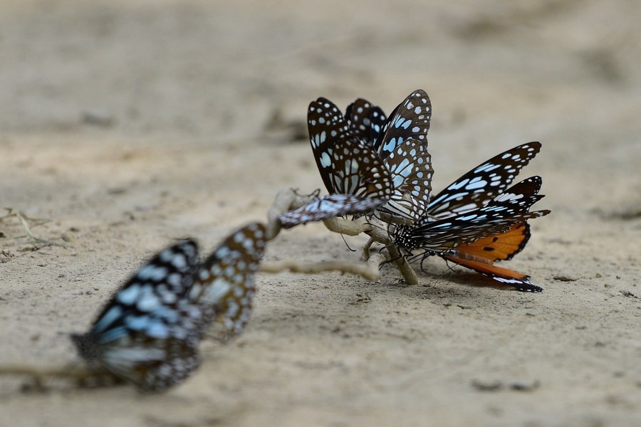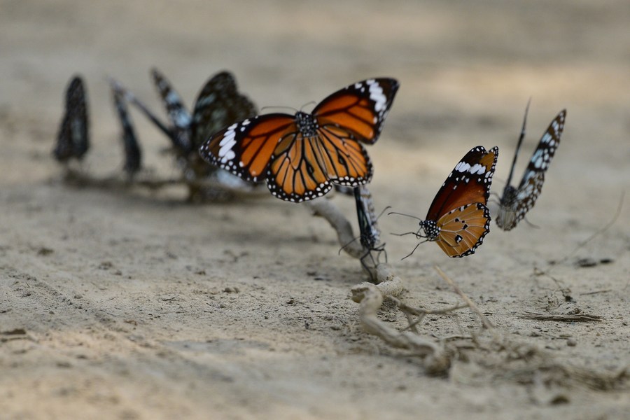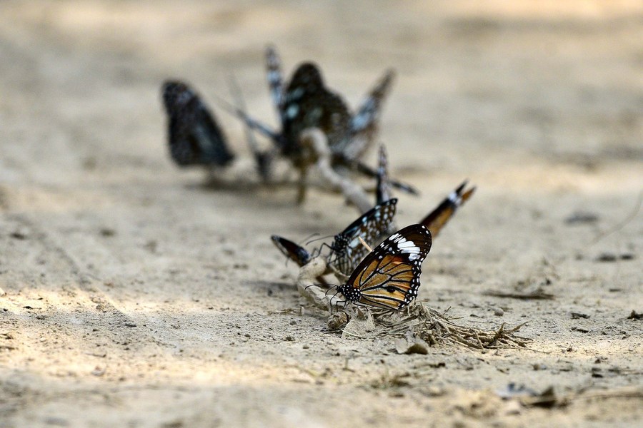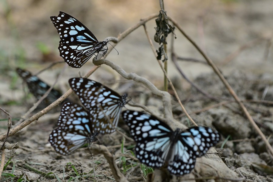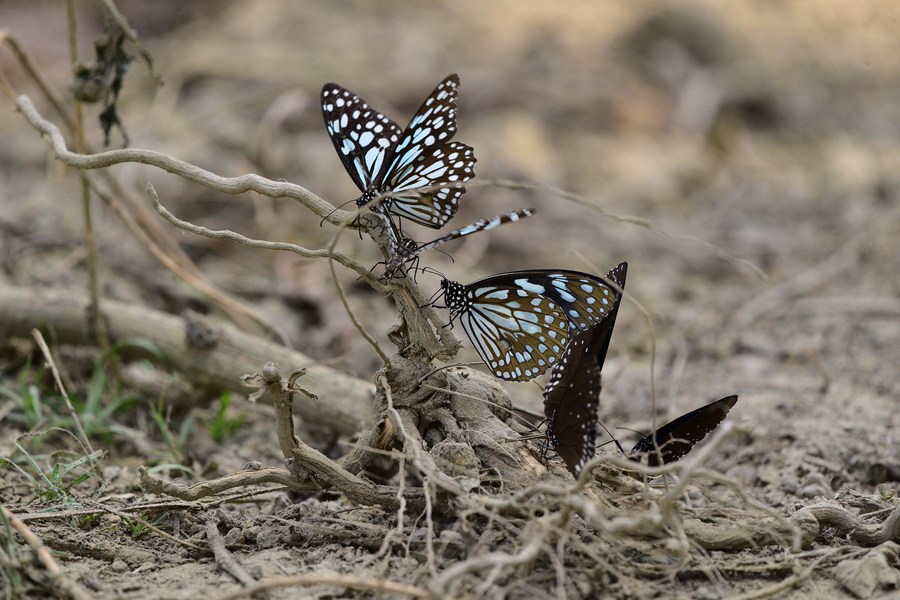 Butterflies are seen at the Pobitora Wildlife Sanctuary in Morigaon district of India's northeastern state of Assam, Oct. 20, 2023. (Str/Xinhua)■