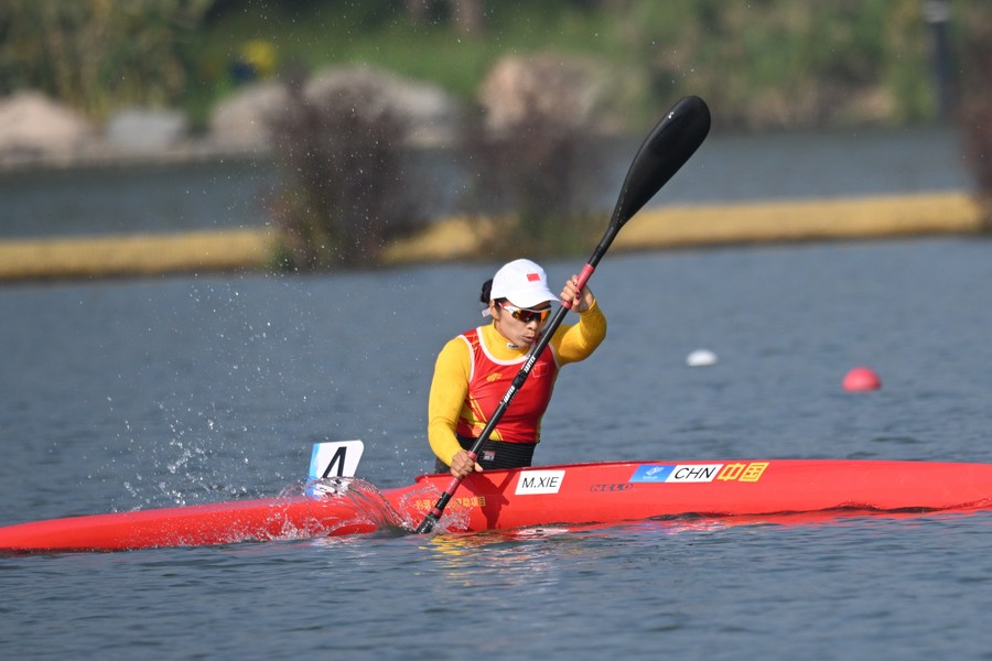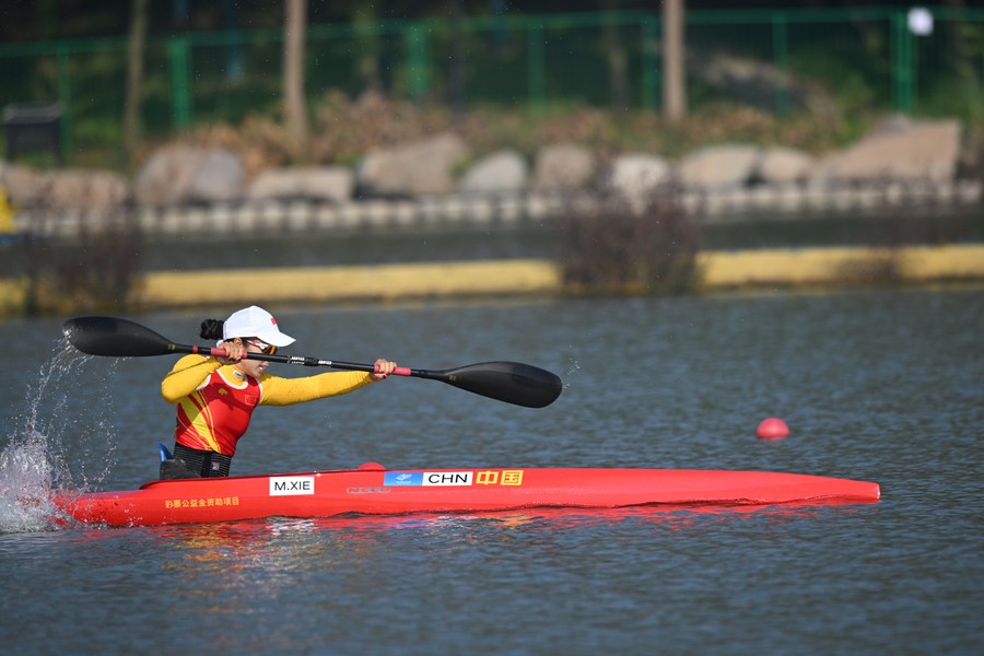 HANGZHOU, Oct. 23 (Xinhua) -- With her paddle slicing through the water swiftly, 37-year-old Chinese canoeist Xie Maosan enjoyed a significant lead in the women's KL1 canoe final and captured the first gold medal of the 4th Asian Para Games on Monday.