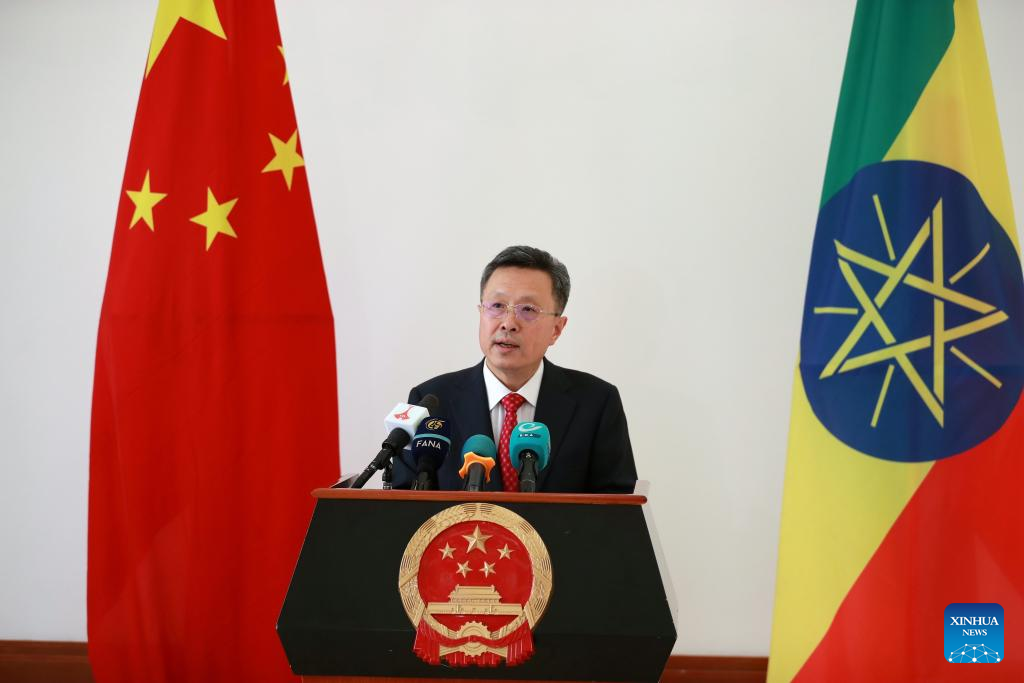 Chinese Ambassador to Ethiopia Zhao Zhiyuan speaks during a press briefing in Addis Ababa, Ethiopia, on Oct. 23, 2023. (Xinhua/Michael Tewelde)