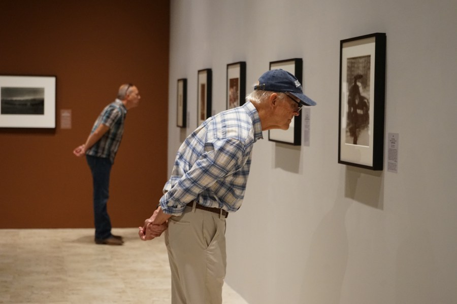 Visitors view artworks at Bowers Museum in Orange County, Southern California, the United States, on Oct. 20, 2023. (Photo by Zeng Hui/Xinhua)