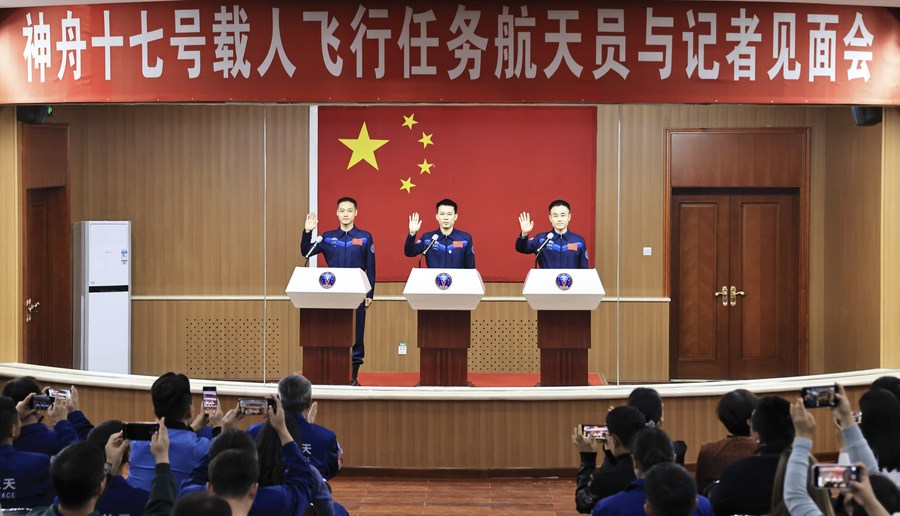 The Shenzhou-17 crew consisting of Tang Hongbo, Tang Shengjie and Jiang Xinlin, will take over from the in-orbit Shenzhou-16 crew, and will spend about six months on the space station, Lin said.