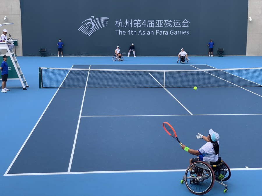 HANGZHOU, Oct. 25 (Xinhua) -- After winning a bronze medal in the wheelchair tennis women's doubles here on Wednesday, 52-year-old Sakhon Khanthasit of Thailand concluded her fourth Asian Para Games journey.
