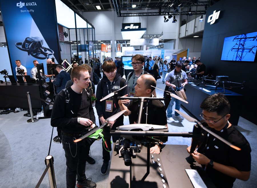 People visit the booth of Chinese company DJI during the IFA 2023 in Berlin, capital of Germany, on Sept. 1, 2023. (Xinhua/Ren Pengfei)