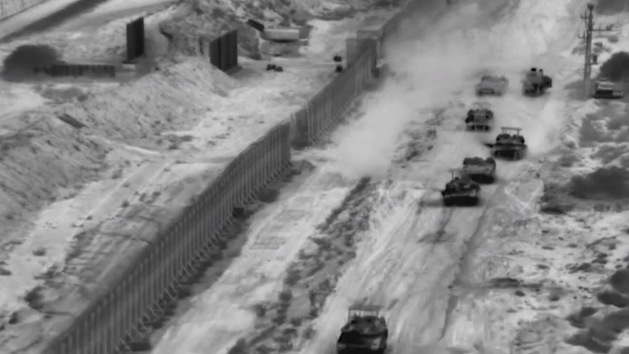 This screenshot taken from a video released by the the Israel Defense Forces (IDF) shows Israeli forces conducting a raid in the northern Gaza Strip on Oct. 26, 2023. (Xinhua)