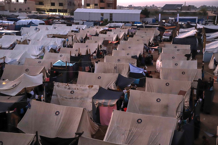 This photo taken on Oct. 25, 2023 shows a temporary shelter for displaced Palestinians in the southern Gaza Strip. (Photo by Rizek Abdeljawad/Xinhua)