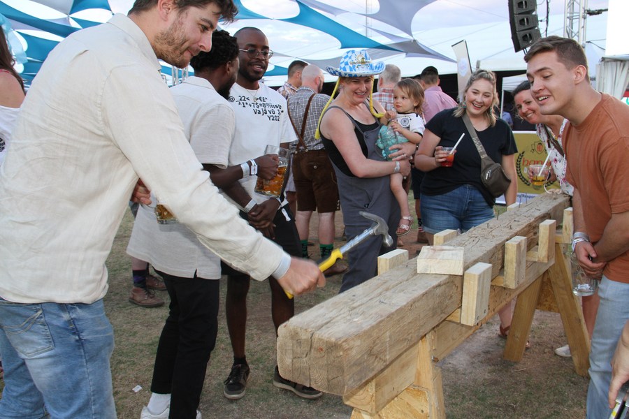 People enjoy a game at the Windhoek Oktoberfest in Windhoek, Namibia, on Oct. 27, 2023. (Photo by Musa C Kaseke/Xinhua)
