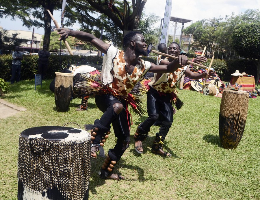 Artists perform during an event to mark World Day for Cultural Diversity for Dialogue and Development at Uganda National Cultural Center in Kampala, Uganda, on May 21, 2022. (Photo by Nicholas Kajoba/Xinhua)