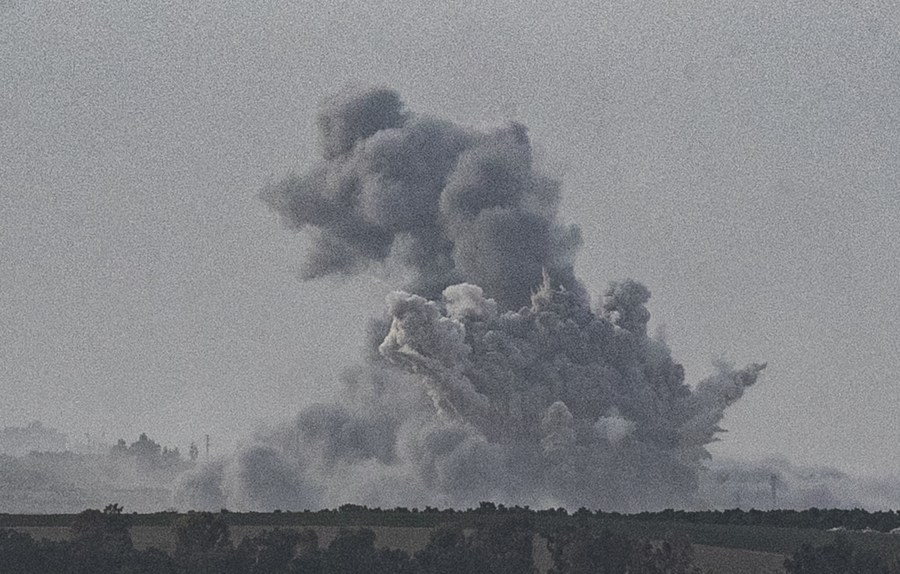 Smoke rises from the northern Gaza Strip after Israeli airstrikes, as seen from Israel's border with Gaza Oct. 29, 2023. (Xinhua/Chen Junqing)