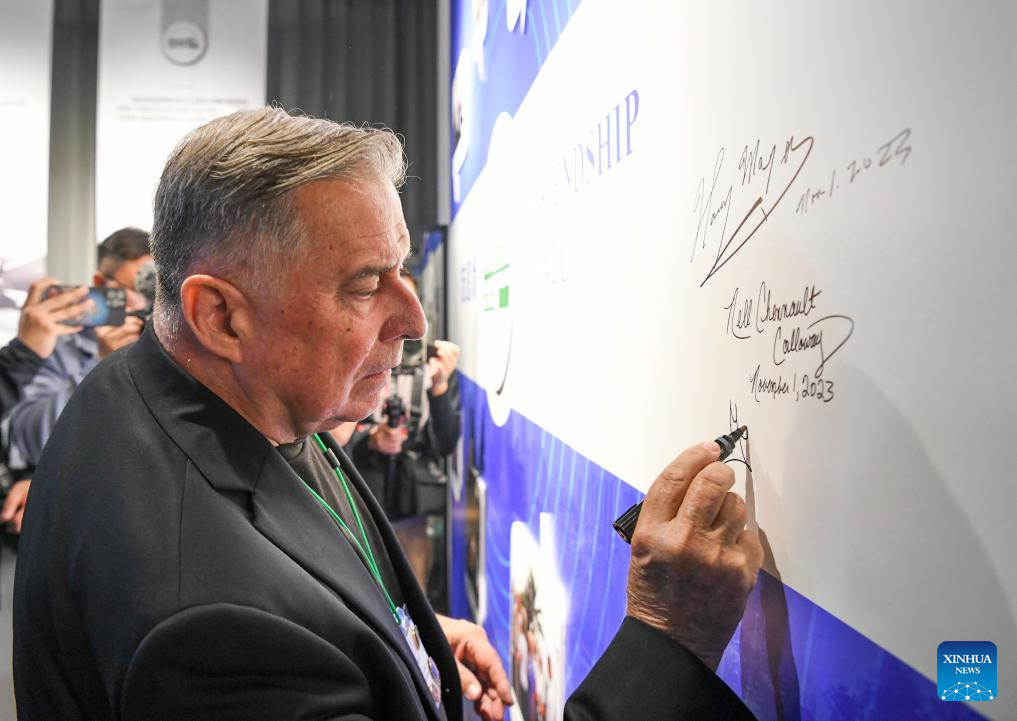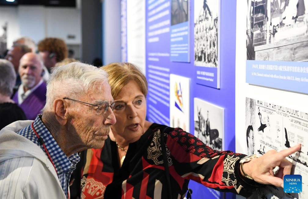 Jeffrey Greene, chairman of the Sino-American Aviation Heritage Foundation, visits Stilwell Museum in southwest China's Chongqing Municipality, Nov. 1, 2023. Jeffrey Greene, chairman of the Sino-American Aviation Heritage Foundation, and Flying Tigers veterans Harry Moyer and Melvin McMullen, visited the Stilwell Museum in Chongqing on Wednesday. (Xinhua/Wang Quanchao)