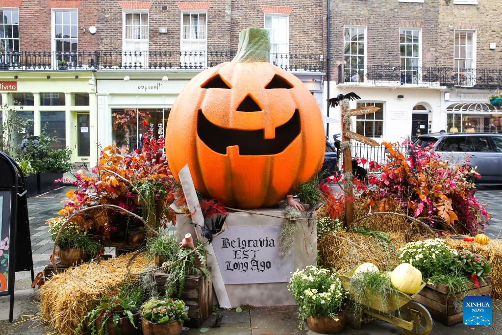 This photo taken on Oct. 30, 2023 shows Halloween decorations in London, Britain. (Xinhua)
