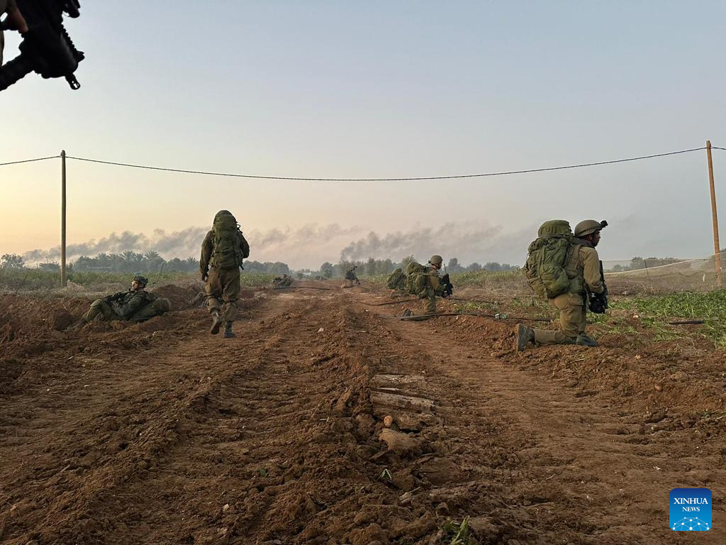 Israeli ground troops conduct operations in the Gaza Strip on Oct. 31, 2023. Nine Israeli soldiers were killed in clashes with Hamas militants in the northern Gaza Strip, the Israeli military said Wednesday. The military said in a statement that the soldiers were killed on Tuesday, as Israel was expanding its ground offensive in the besieged Palestinian enclave. (IDF/Handout via Xinhua)