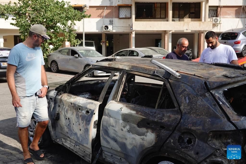 A man checks a vehicle damaged in a rocket attack from Gaza on Oct. 31, in Ashdod, Israel, on Nov. 1, 2023. At least 8,525 Palestinians have been killed by Israeli strikes in Gaza since the beginning of the latest Israel-Hamas conflict starting from Oct. 7, according to the Gaza-based Health Ministry. Meanwhile, the Israeli military said the latest conflict has killed at least 1,400 people in Israel. (Xinhua/Wang Zhuolun)