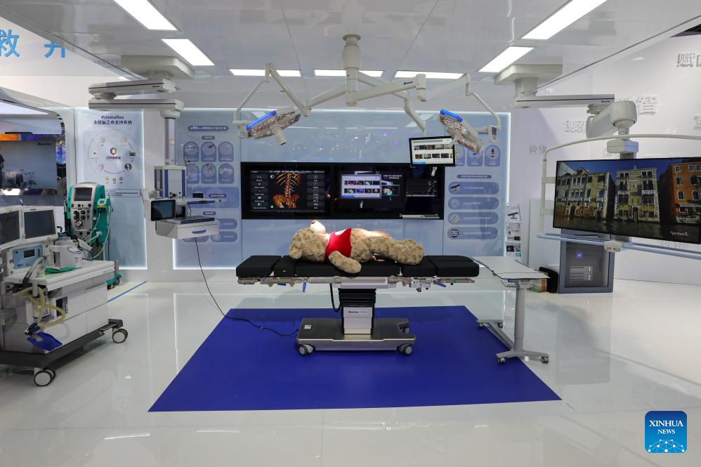 This photo taken on Nov. 2, 2023 shows a smart operating room at the booth of Baxter, arranged for the upcoming sixth China International Import Expo (CIIE), in Shanghai, east China. The sixth CIIE is scheduled to take place in Shanghai from Nov. 5 to 10. The preparation work at the National Exhibition and Convention Center (Shanghai) has entered the final stage. (Xinhua/Xin Mengchen)