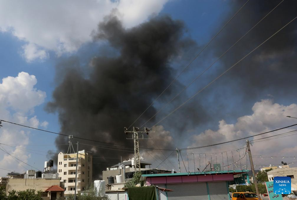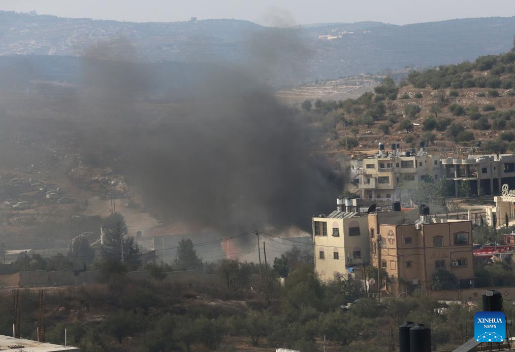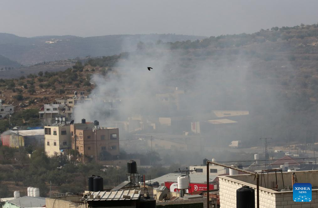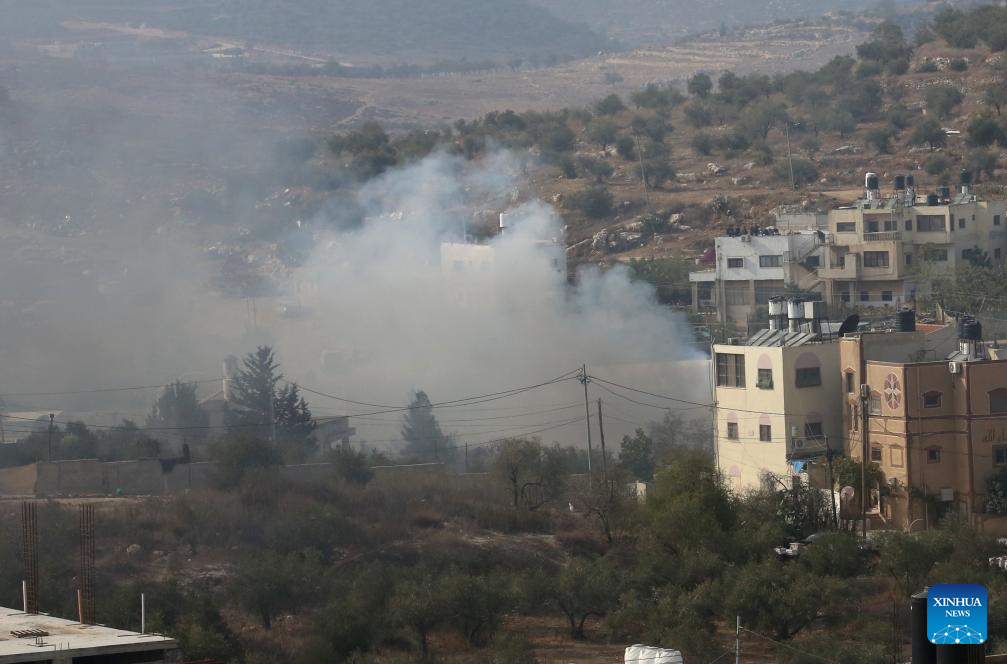 Smoke rises during clashes between Palestinians and Israeli settlers in Deir Sharaf village in the West Bank city of Nablus, on Nov. 2, 2023. Since the beginning of the Israel-Hamas conflict on Oct. 7, the death toll of Palestinians who were killed in the West Bank by Israeli bullets has risen to 132. (Photo by Nidal Eshtayeh/Xinhua)