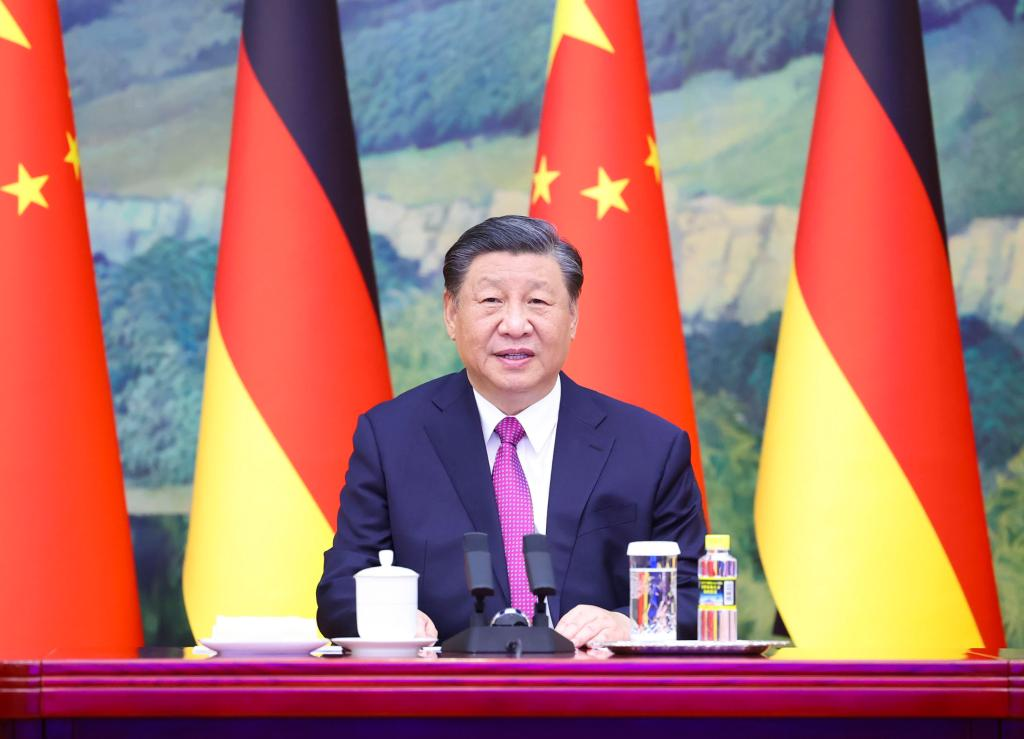 BEIJING, Nov. 3 (Xinhua) -- Chinese President Xi Jinping on Friday met with German Chancellor Olaf Scholz via video link. ■