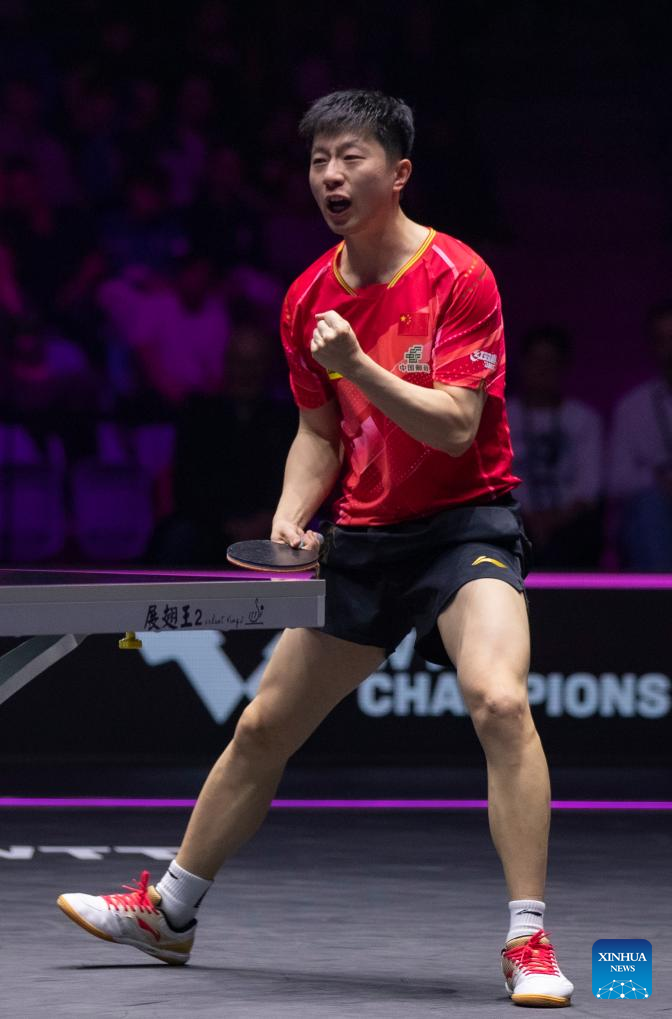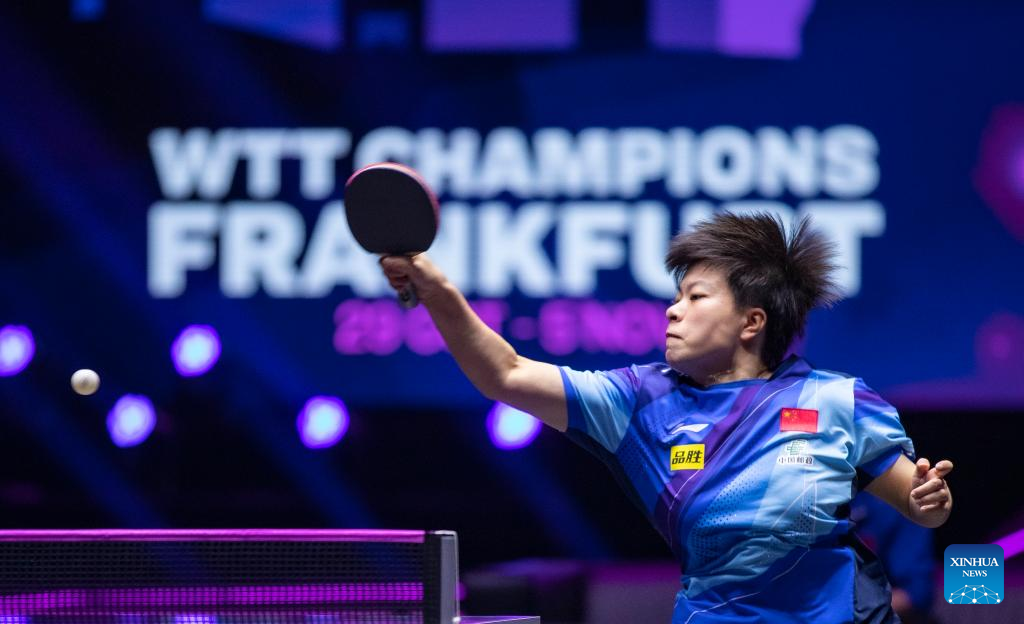 FRANKFURT, Nov. 3 (Xinhua) -- China's table tennis veteran Ma Long eased past local star Dimitrij Ovtcharov in the quarterfinal clash on Friday at WTT Champions Frankfurt.