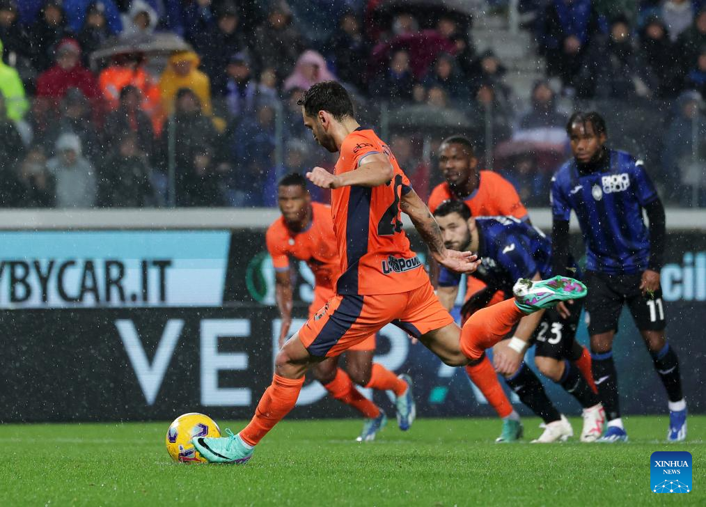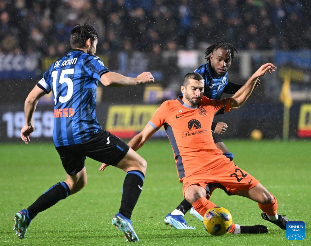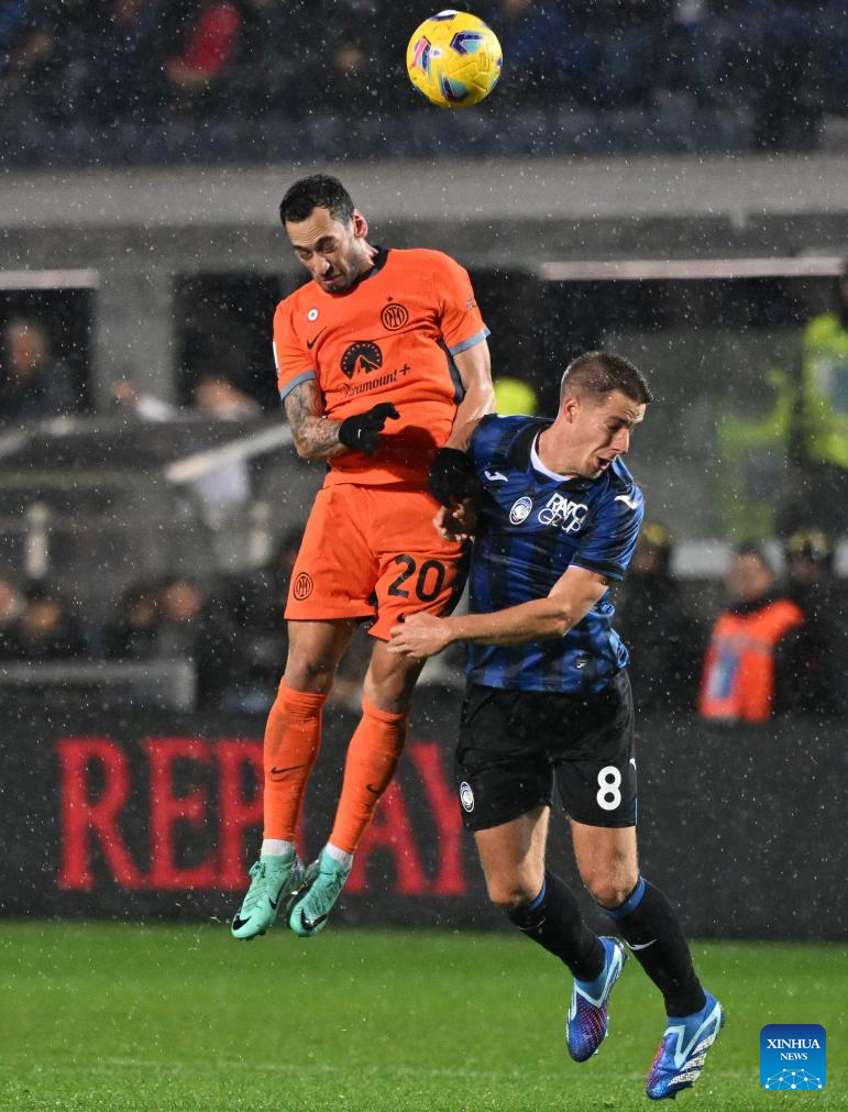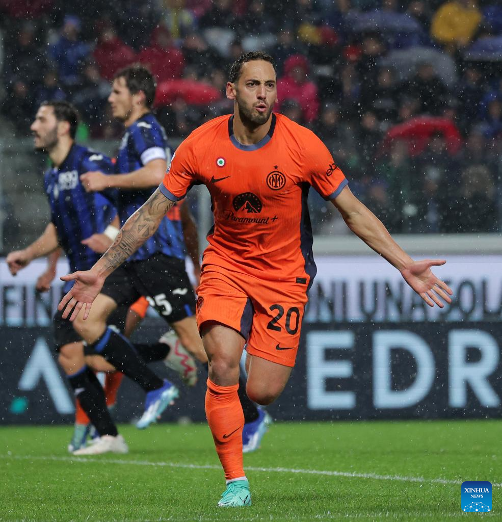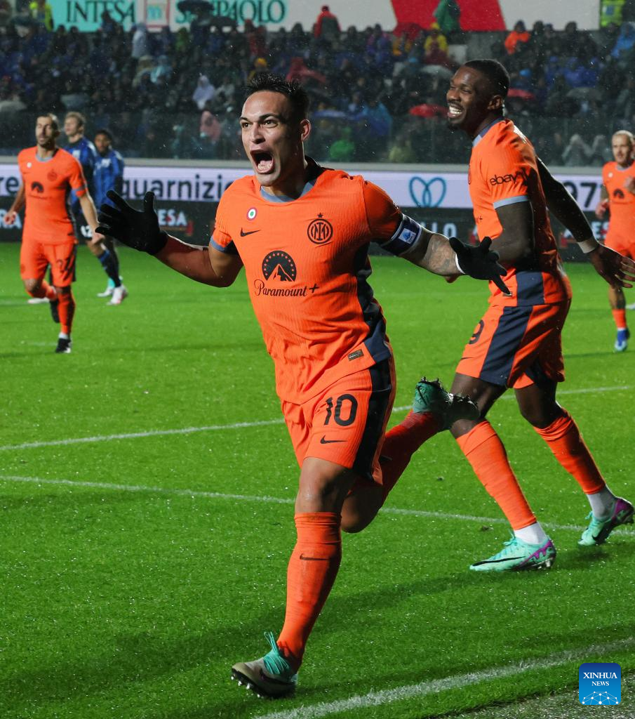 ROME, Nov. 4 (Xinhua) -- Inter Milan continued their fearsome form as they won Atalanta 2-1 away in Serie A on Saturday, thanks to a pair of strikes from Hakan Calhanoglu and Lautaro Martinez.
