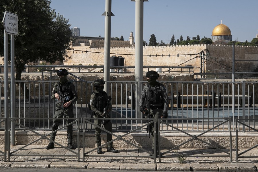Police stand guard around the Old City of Jerusalem on Nov. 3, 2023. People are not allowed to perform Jummah prayers in Al-Aqsa Mosque. (Photo by Chen Junqing/ Xinhua)