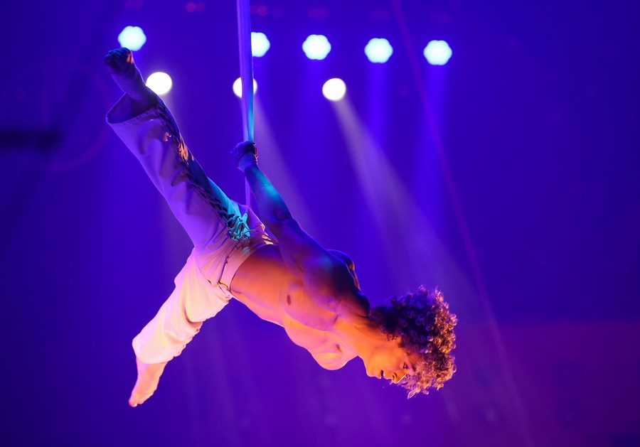 A Belgian artist performs during the 7th China International Circus Festival in Zhuhai, south China's Guangdong Province, Nov. 5, 2023. (Xinhua/Liu Dawei)