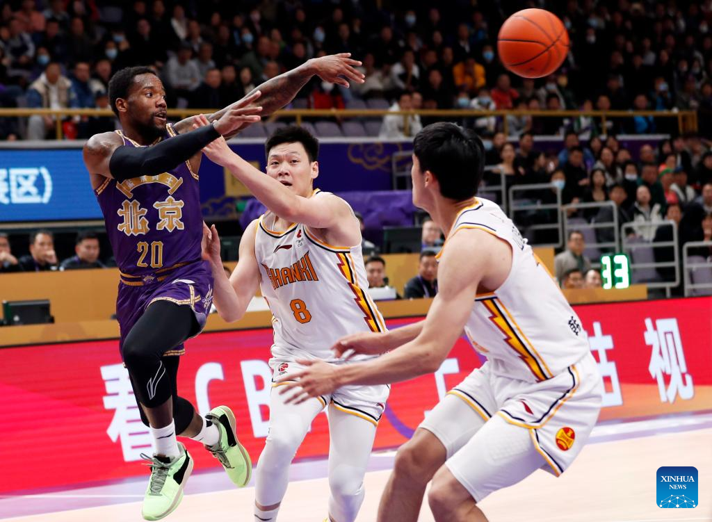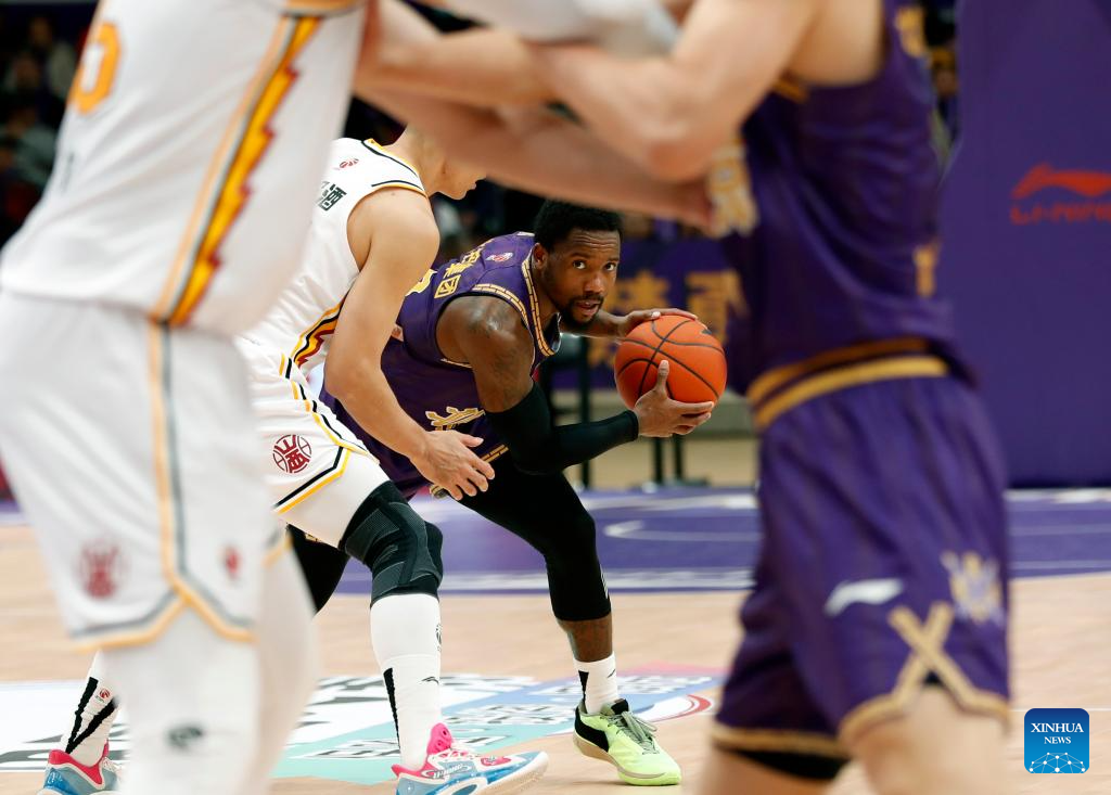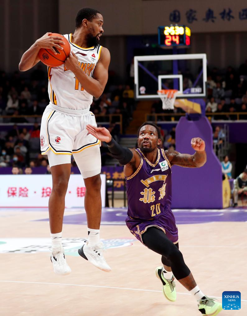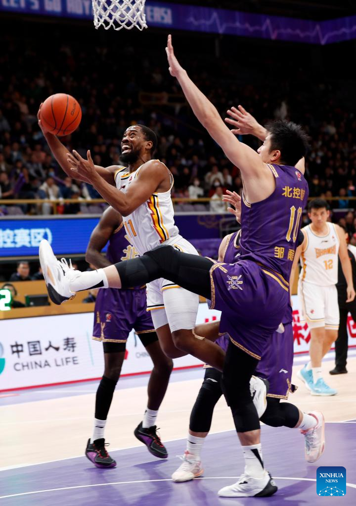 Kahlil Felder (C) of Beijing Royal Fighters competes during the 7th round match between Beijing Royal Fighters and Shanxi Loongs at 2023-2024 season of the Chinese Basketball Association (CBA) league in Beijing, capital of China, Nov. 6, 2023. (Xinhua/Luo Yuan)