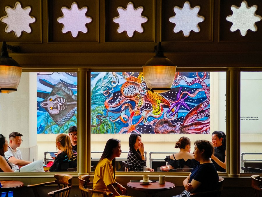 People are seen in a coffee shop in Chengdu of southwest China's Sichuan Province, on June 21, 2023. (Xinhua/Shen Bohan)