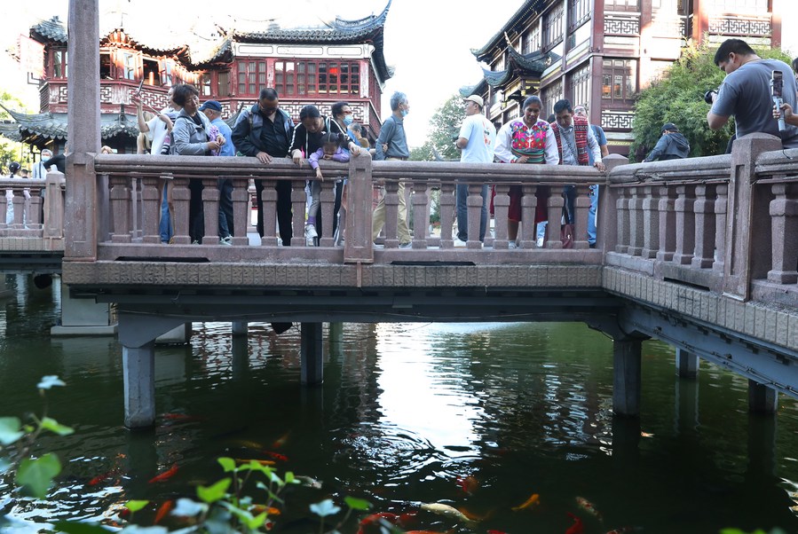 Peruvian craftsman Mamani visits Yuyuan Garden in east China's Shanghai, Nov. 2, 2023. (Xinhua/Fang Zhe)