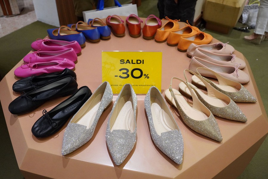 A discount sign is seen at a store in Rome, Italy, on July 6, 2023. (Xinhua/Jin Mamengni)