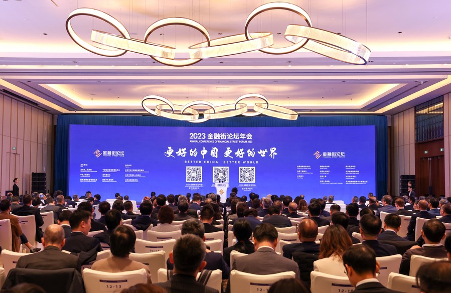 This photo shows the venue for the Annual Conference of Financial Street Forum 2023 in Beijing, capital of China, Nov. 8, 2023. (Xinhua/Yin Gang)