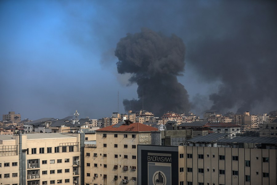 Smoke rises following an Israeli airstrike in Gaza City, on Nov. 9, 2023. (Xinhua)