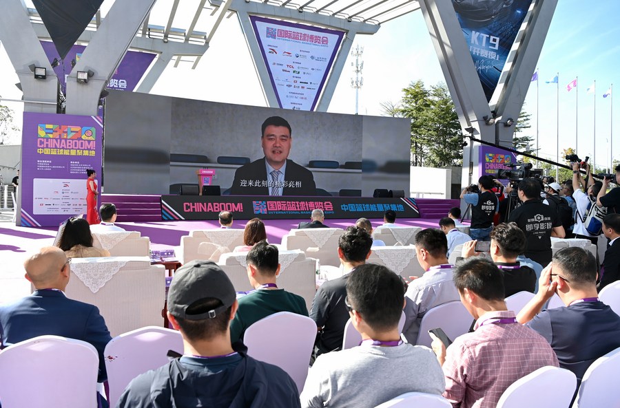 Yao Ming, president of the Chinese Basketball Association, delivered a video address to the expo that runs through Sunday.
