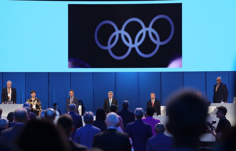 Photo taken on Oct. 17, 2023 shows the venue of the 141st International Olympic Committee (IOC) Session in Mumbai, India. The 141st International Olympic Committee (IOC) Session closed here on Tuesday. (Xinhua/Cao Can)