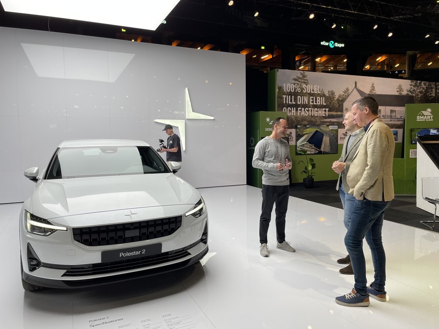 People look at a Polestar electric vehicle during the Swedish eCarExpo 2022 in Stockholm, Sweden, April 29, 2022. (Xinhua/Fu Yiming)