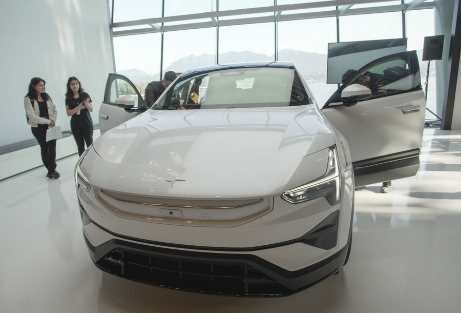 A Polestar 3 electric SUV is displayed at the Fully Charged Live show in Vancouver, British Columbia, Canada, on Sept. 8, 2023. (Photo by Liang Sen/Xinhua)
